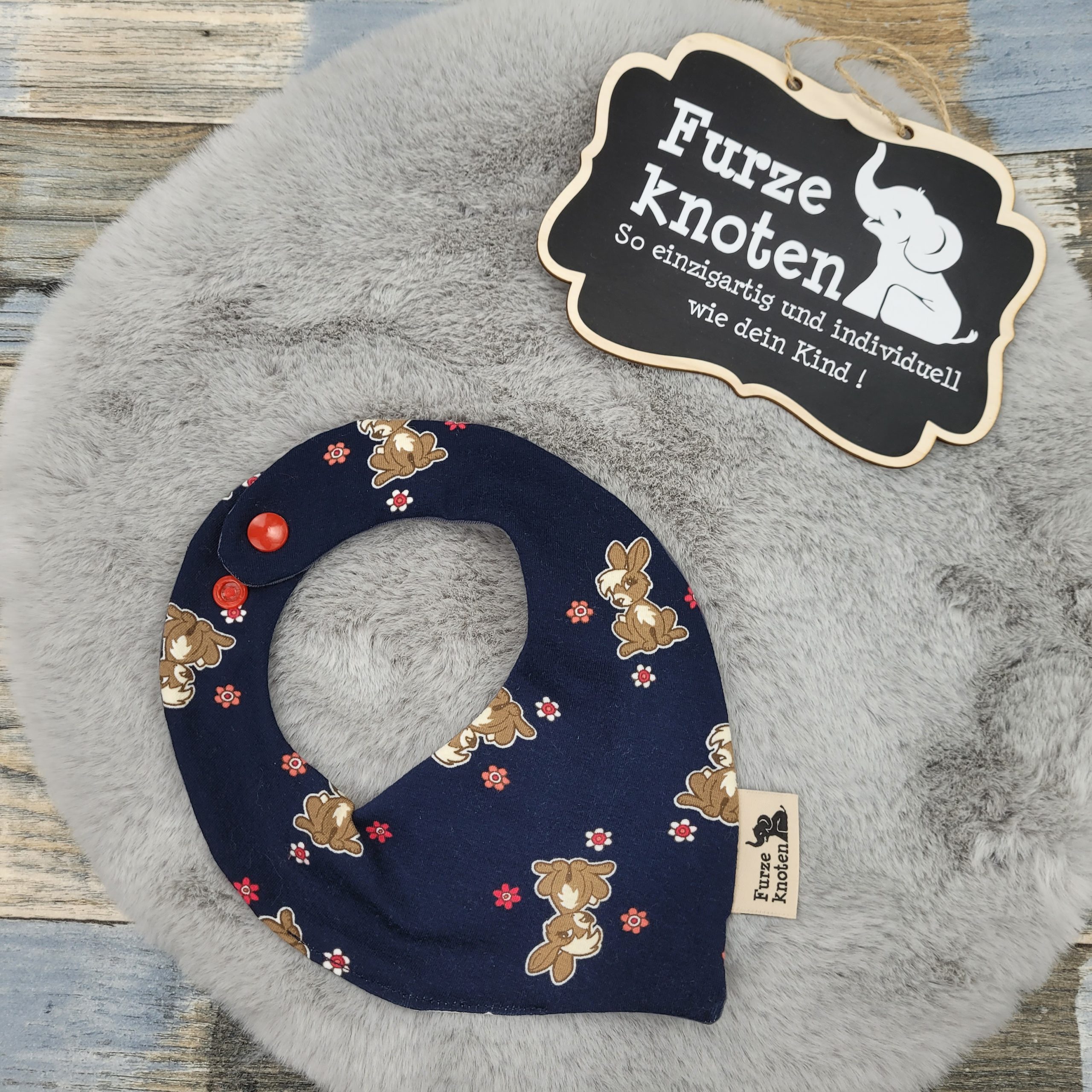 Das Tuch wurde aus einem schönen Motivstoff mit farblich passender, einfarbiger Rückseite gefertigt. Dadurch ist es noch vielseitiger kombinierbar. Geschlossen wird es mit einem farblich passenden Druckknopf aus Kunststoff oder Metall. Bei diesem Halstuch ist dieser in 3 Größen verstellbar.