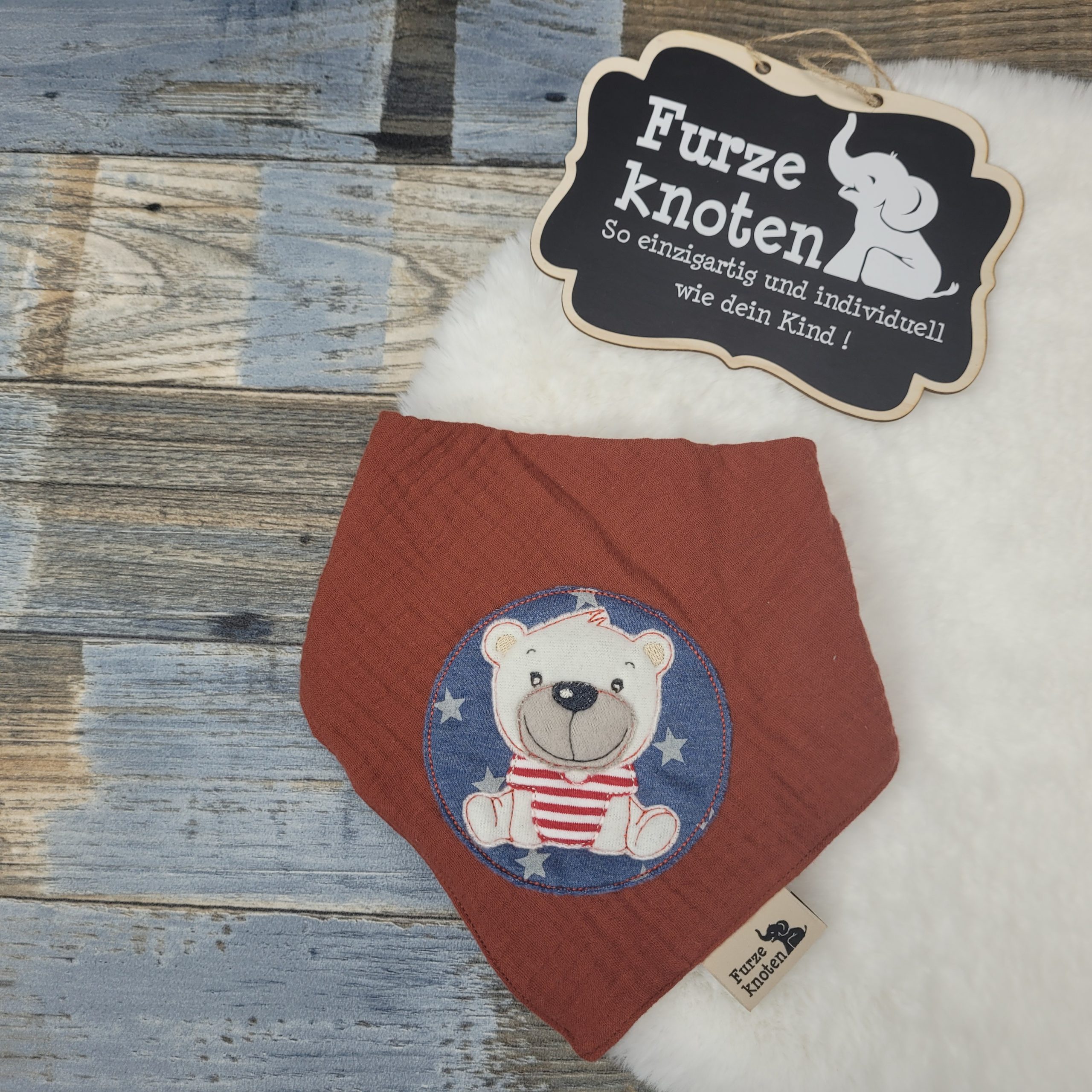Musselinhalstuch mit Applikation „Bär“ Rost