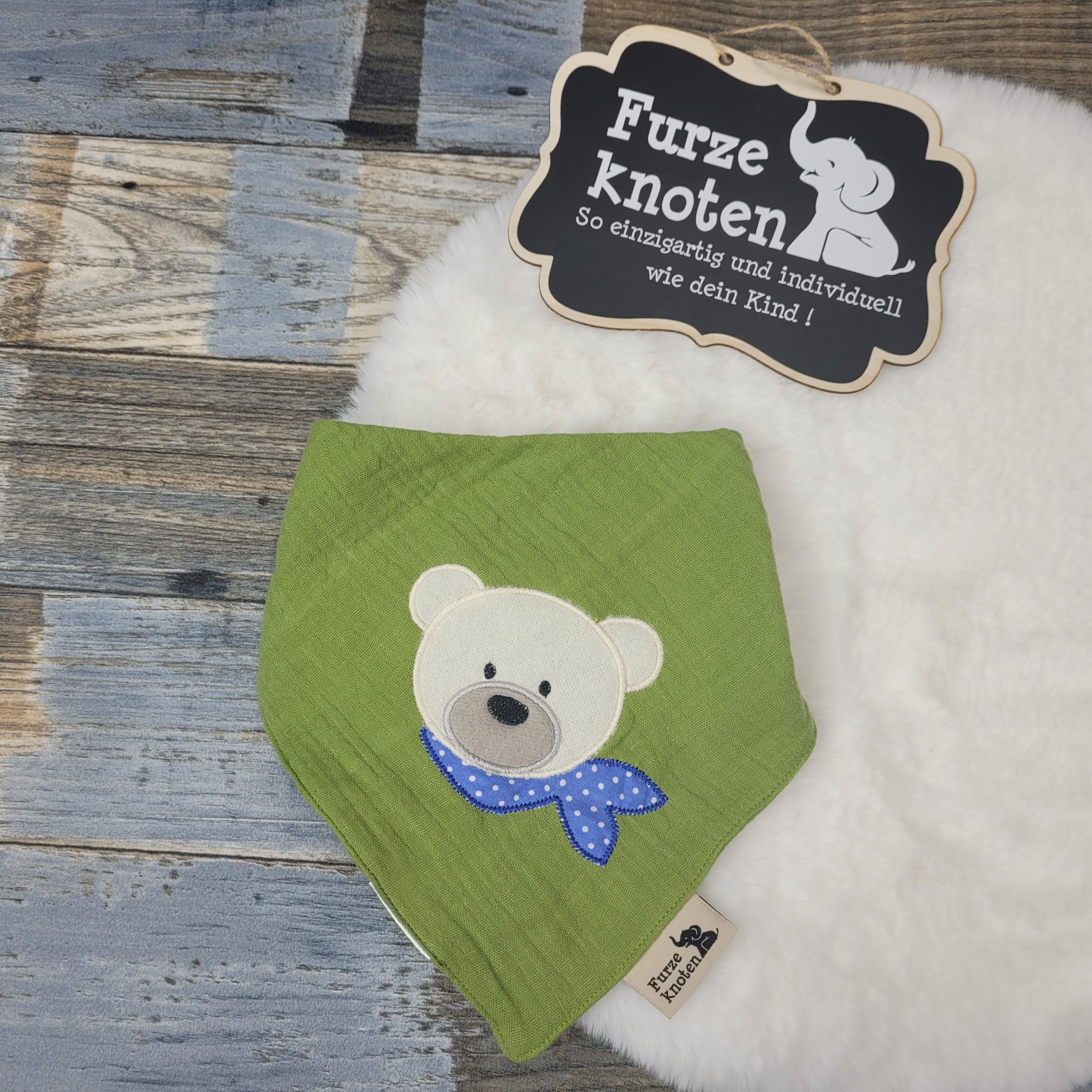 Musselinhalstuch mit Applikation „Bär“ Hellgrün