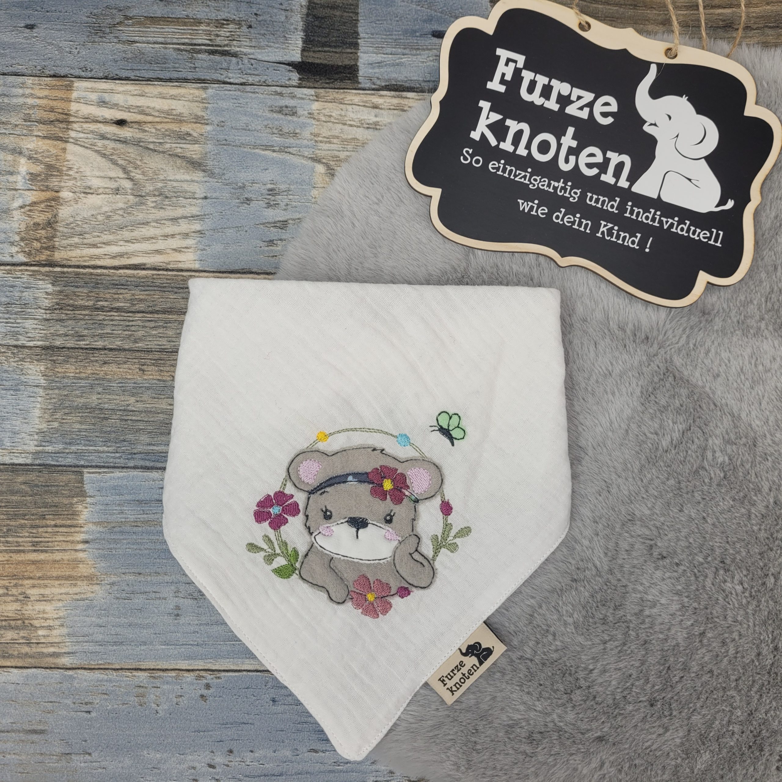 Musselinhalstuch mit Applikation „Bär“ weiß